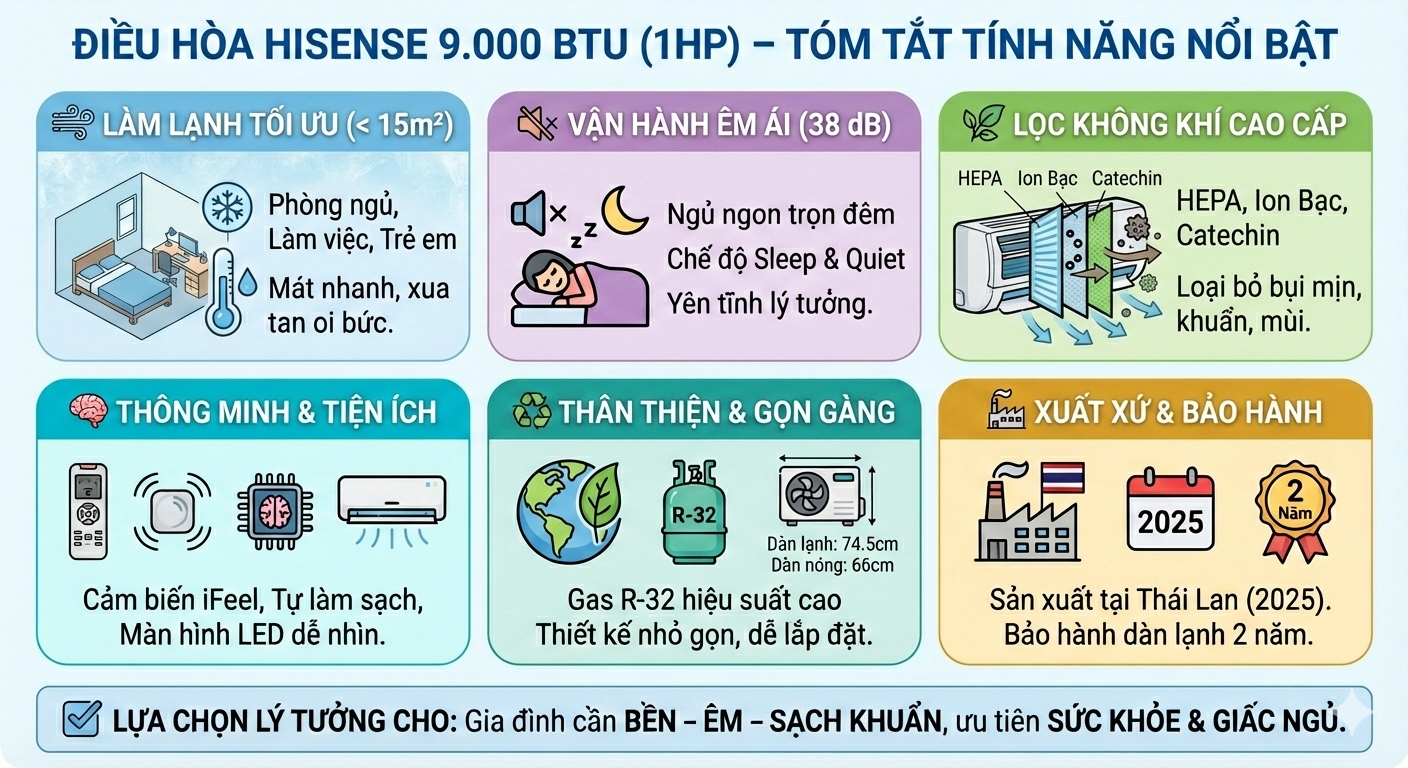 ❄️ ĐIỀU HÒA HISENSE 9.000 BTU – LÀM MÁT HIỆU QUẢ, KHÔNG KHÍ TRONG LÀNH, GIÁ TRỊ VƯỢT TRỘI