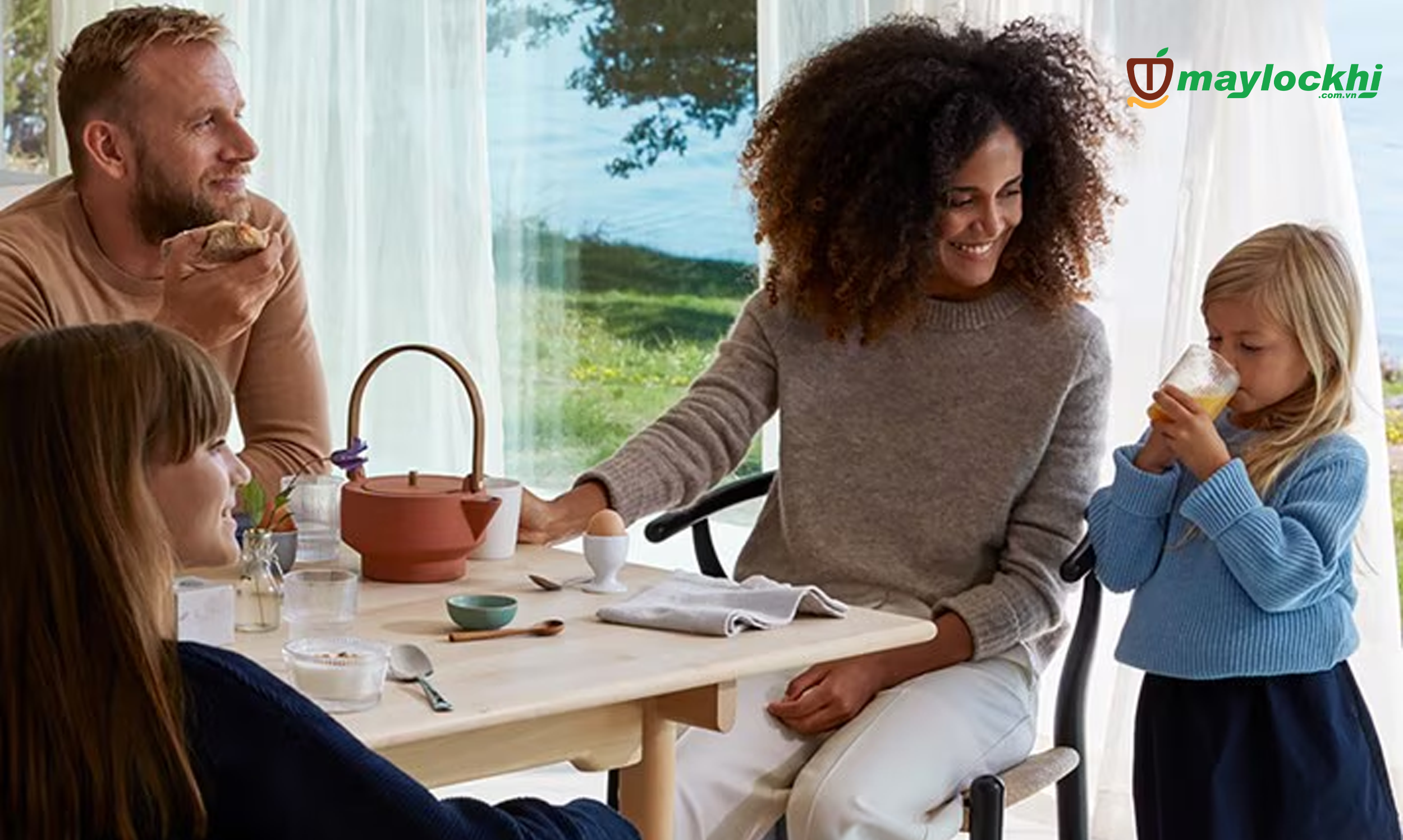 Khe thoát khí hình xoắn ốc giúp tạo ra luồng khí sạch mạnh mẽ, lưu thông một cách hiệu quả khắp phòng mà không tạo cảm giác gió lùa khó chịu*.