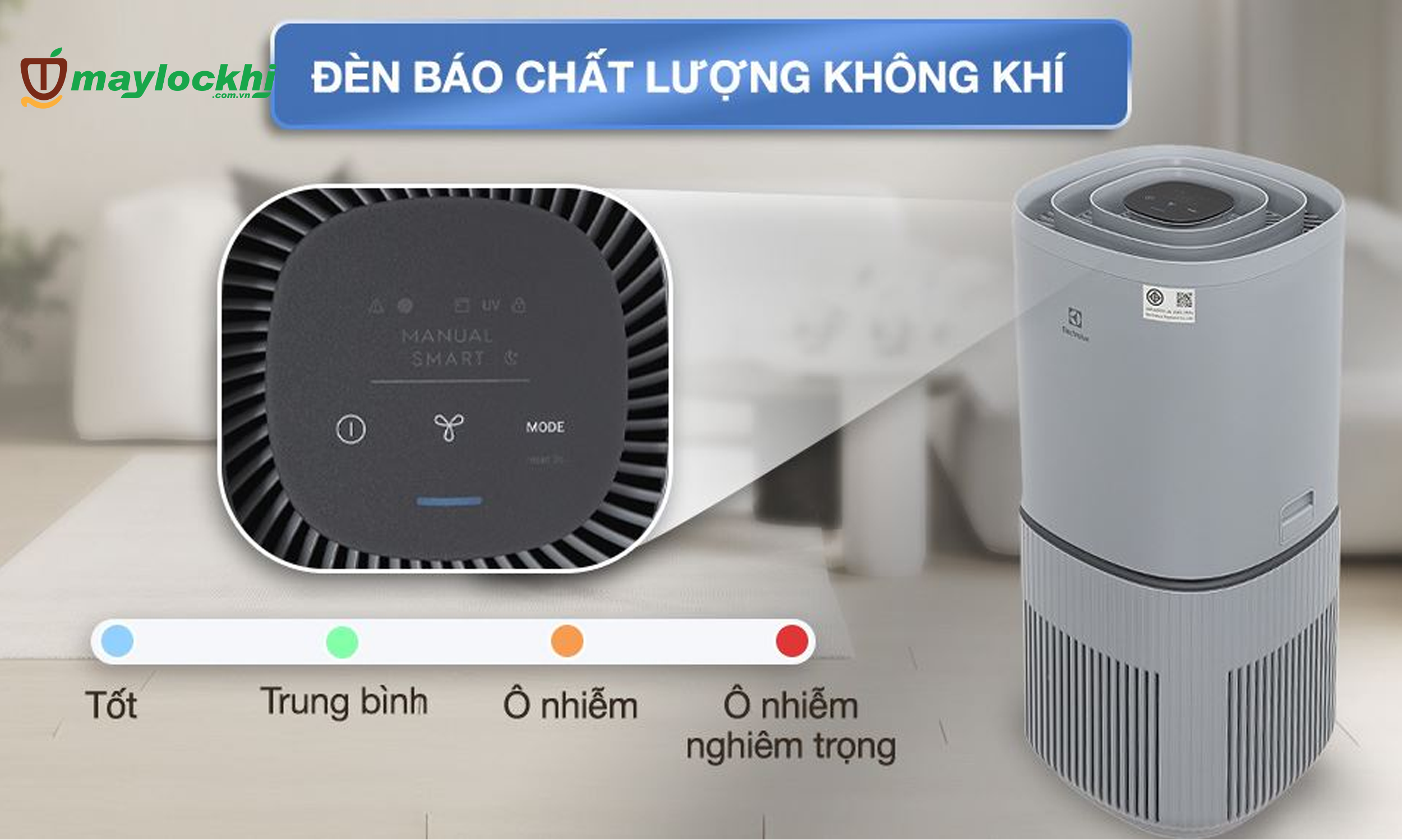 - Đèn báo chất lượng không khí giúp tiện theo dõi tình trạng không khí trong nhà.